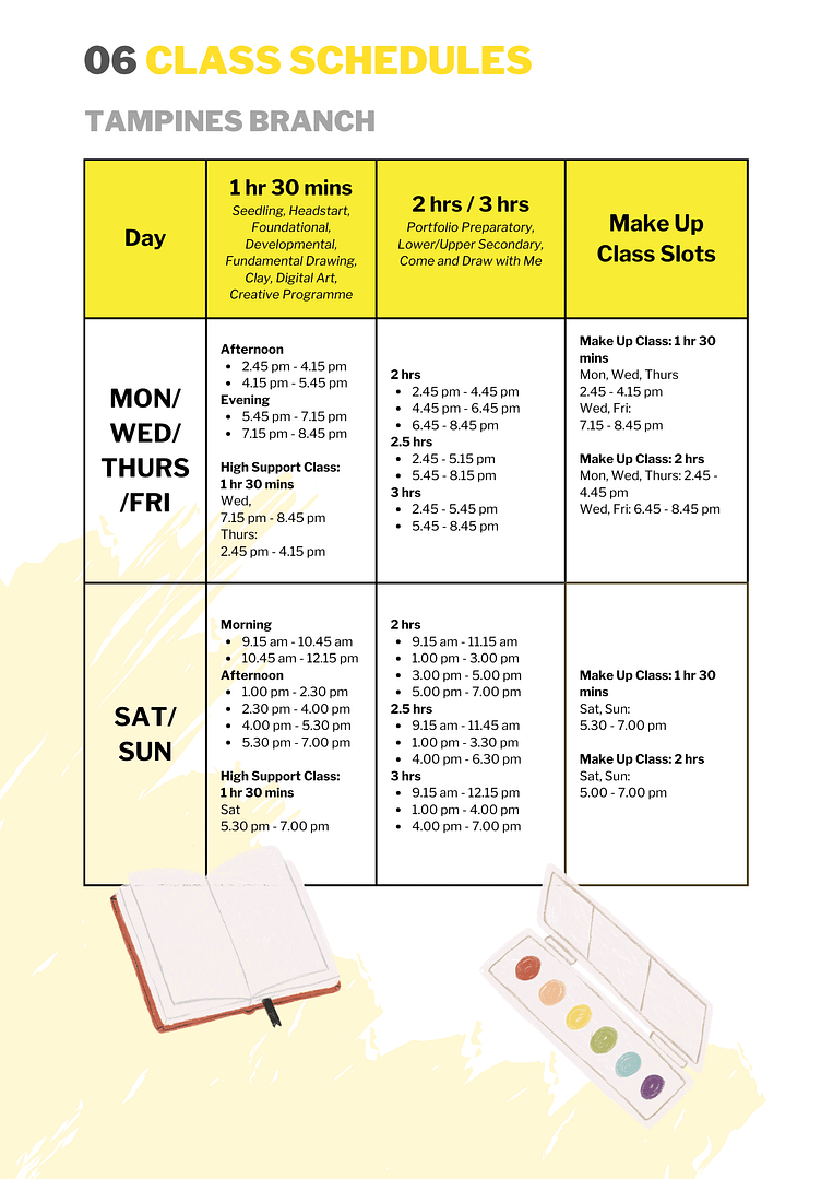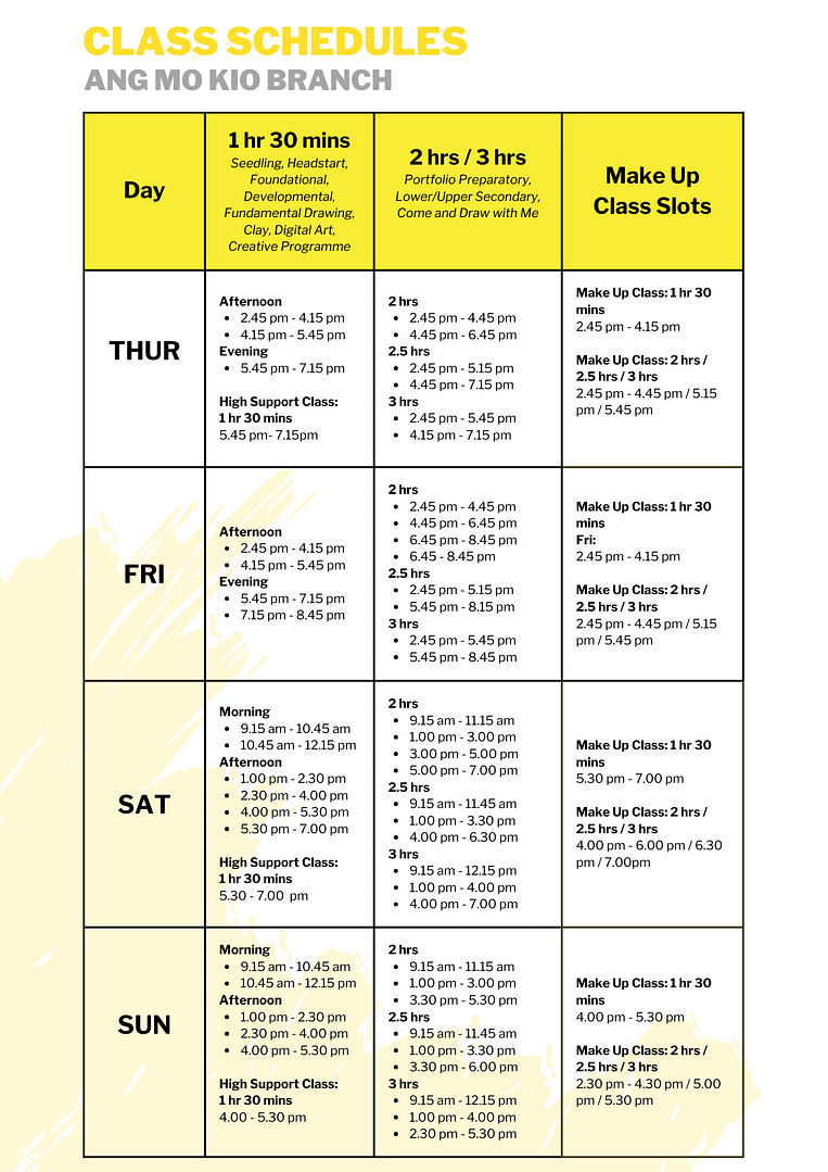Our adult art class cater to each student’s interests in terms of mediums and subject matters. We welcome students of any experience level as we guide students to improve their skill levels as well as introduce students to different art forms. If there are specific subject matters you are keen to explore and any prior art experiences you have? Feel free to send us photos of your past works as well. This information will help us to tailor a specific programme for you to help push your skills further.