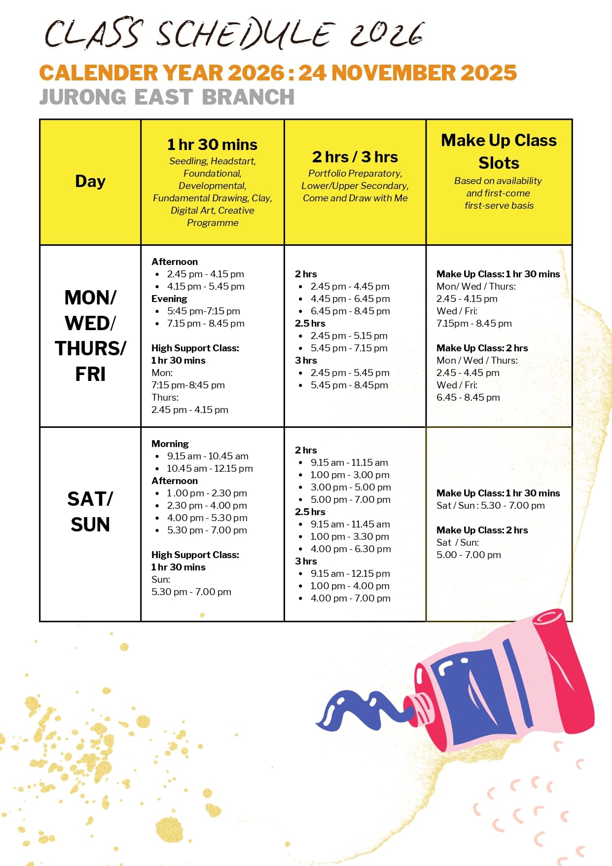 - All our classes including our preschool classes are drop off class, non-accompanied by parents.
